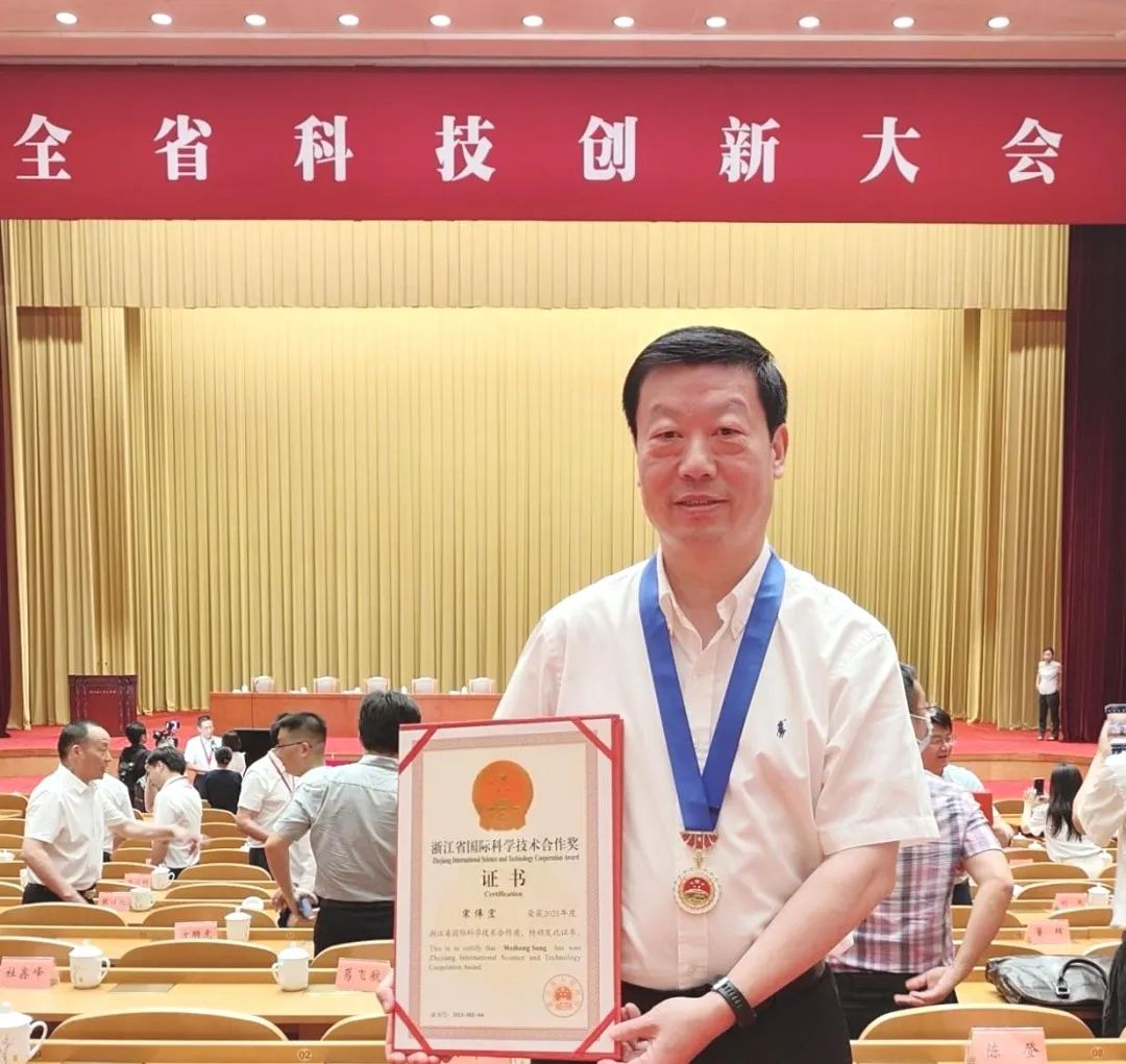 国际科学技术合作奖授予为我省对外科学技术交流与合作作出重要贡献的外国专家或者组织。宋伟宏院士是首位获得该奖项的在温科学家。