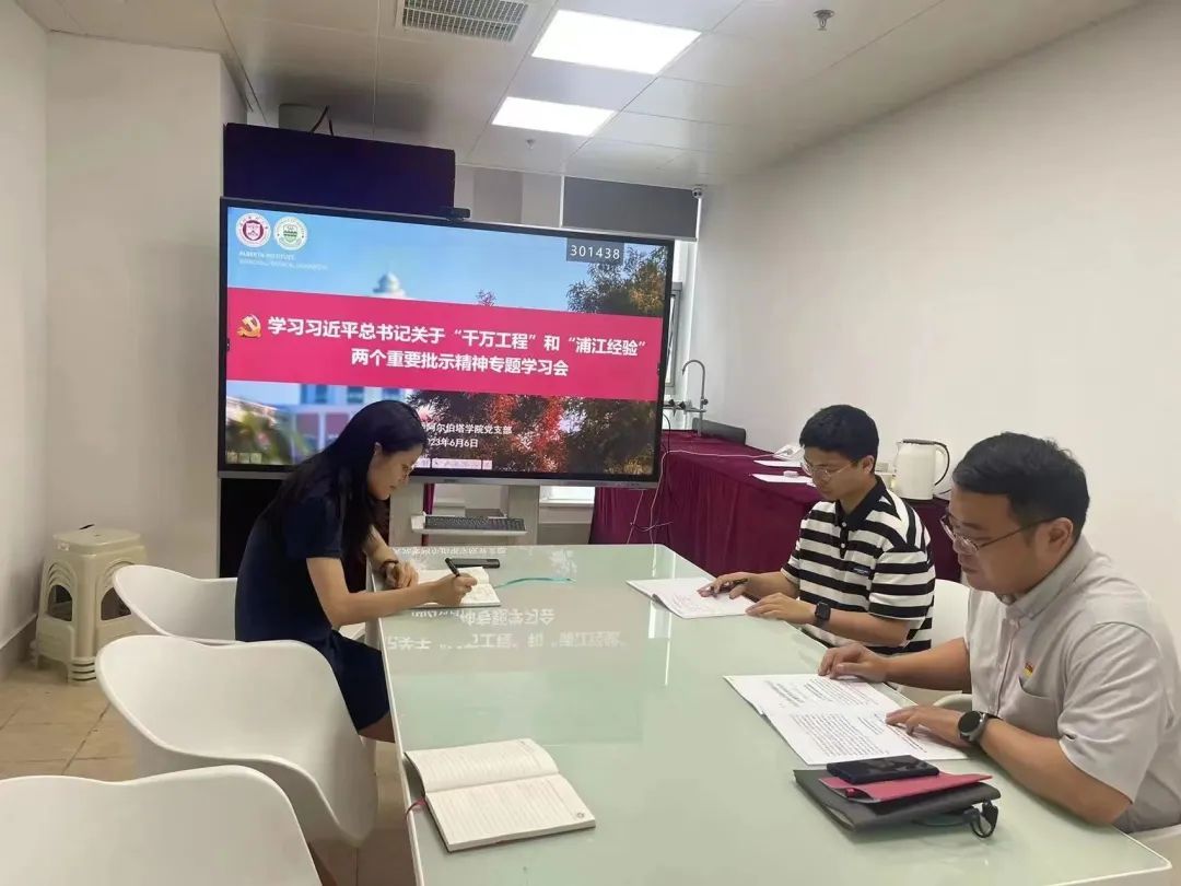 会议强调,支部党员需要通过理论和实践学习感悟习近平总书记身上攻坚克难的担当精神和求真务实的领袖风采。深入学习“千万工程”和“浦江经验”蕴含的战略思维,坚持以学促干、强化贯彻落实,把公司发展与助力乡村医疗振兴、志愿服务、健康教育等有机结合。党支部书记王小尚希望全体党员:一是“走出去、学经验”,要大兴调研,真正用好调查研究这个传家宝,学习不同高校中外合作办学的改革经验,扎实推进办学模式、育人方式、管理体制改革;二是“想办法、好好干”,要积极瞄准浙江省高等教育强省建设目标,教职工党员带头真抓实干、守正创新,以常学常新的态度,走近员工、走近课堂、走近宿舍,着力实现业务能力和专业本领的与时俱进;三是“不怕苦、努力干”,深入了解公司发展中存在的困难、问题,全院一盘棋、上下一条心,加强检视整改,敢于实干担当,积极服务公司发展大局和师生所思所想。