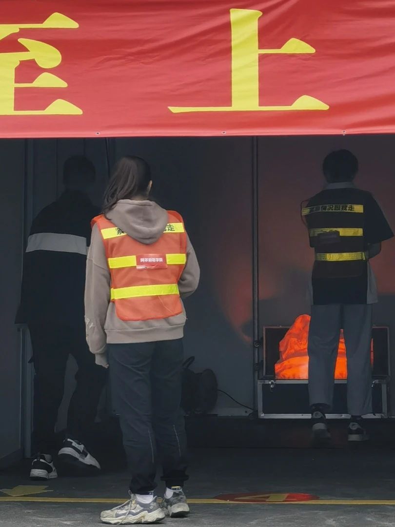 在开幕式上,阿院学子认真聆听老师和消防队长的讲话。此次消防趣味运动会共设置英雄救美、接力灭火、重装出击、火场逃生四个比赛项目,将灭火、逃生及救援技能融入项目之中,让同学们在轻松愉快的运动中学习安全知识,掌握消防技能。