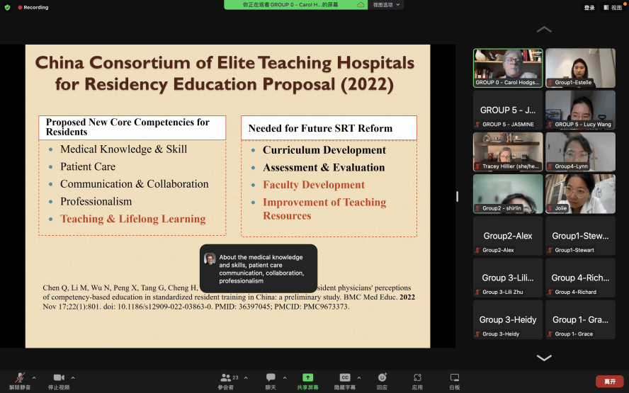 本次“云端课堂”是由医学教育专家Carol Hodgson教授、Pamela Brett MacLean教授担任核心授课教师,课程体系涵盖医学教育理论、提高课堂教学技巧、考核评估及临床教学的人文关怀四部分。培训内容紧紧围绕国际先进的CanMEDS框架(加拿大医学教育体系)胜任力的理念,并结合K1体育本科临床医学专业的培养方案,系统讲解北美医学教育、加拿大卫生健康系统、EPAs置信职业行为、课堂TBL、PBL、CBL等教学方法的运用的概况。
