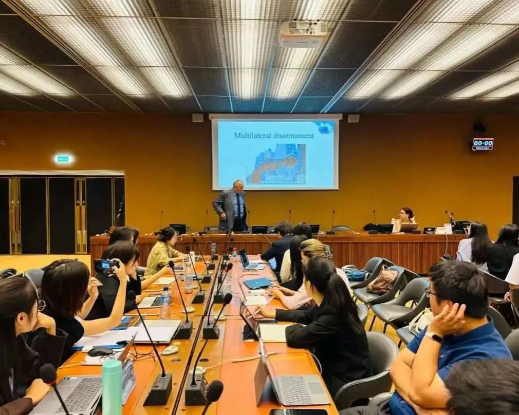 在联合国内及周边国际组织访问参观总共有五天的行程,每天也都被安排得足够充实。我们西装革履地步入联合国大楼,在曾经开过无数重要会议的会厅内正襟危坐,聆听了UNIDR(联合国裁军研究所)、UNECE(联合国欧洲经济委员会)、Earthjustice(地球正义)、Swiss Donation and Humanitarian Expert(瑞士人道主义援助组织)等国际组织官员对自身职责与工作经历的分享,也通过我们感兴趣的内容进行提问,在热烈而友好的氛围中深刻意识到联合国及其他国际组织对我们当下日常生活的重要作用,其实全世界人民的福祉与他们的辛勤付出密不可分,只是很多时候大家因为习以为常而注意不到。
