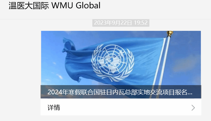 在公司国合处公众号推送上看到联合国日内瓦总部的交流项目后,作为一名曾经的模联人,我立刻就被项目的内容深深吸引。