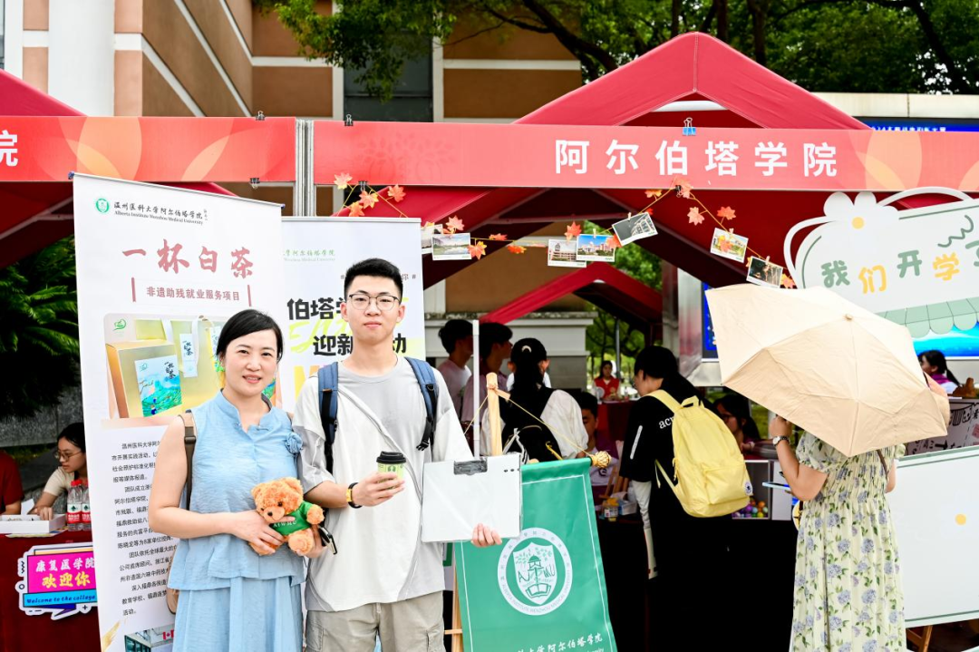 从八月迈进九月,酷热的炎日和阵阵太阳雨,交织成我们新学期的篇章,怀着兴奋与激动的心情来到温医,在第一天就有了非常有意思的体验~一日学长,我成功的混入我们学长学姐的迎新大队,切身的感受阿院给我们准备的各种惊喜,文创产品,趣味签到墙,贴心的白茶以及一些快问快答。有小白塔之称的图书馆真的很震撼,在校园的各处都进行了打卡。希望在未来的五年不断跟随老师的步伐,不断坚定自己的医学路,不断提高自己的医学常识,相信新学期的我,已经做好了一名正式老员工的准备,愿24届阿院的旁友们共勉,创造我们这一届的辉煌与荣光。