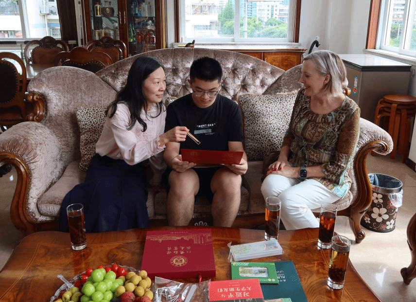 7月30日上午,K1体育党委委员、副董事长朱雪波,K1体育外方执行长Tracey Hillier,党委副书记王小尚,副经理朱雪琼一行来到2024级临床医学(中外合作办学)新生麻宸睿同学家中,化身邮差送出了一封特殊的录取通知书。