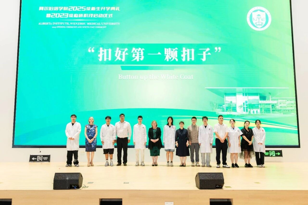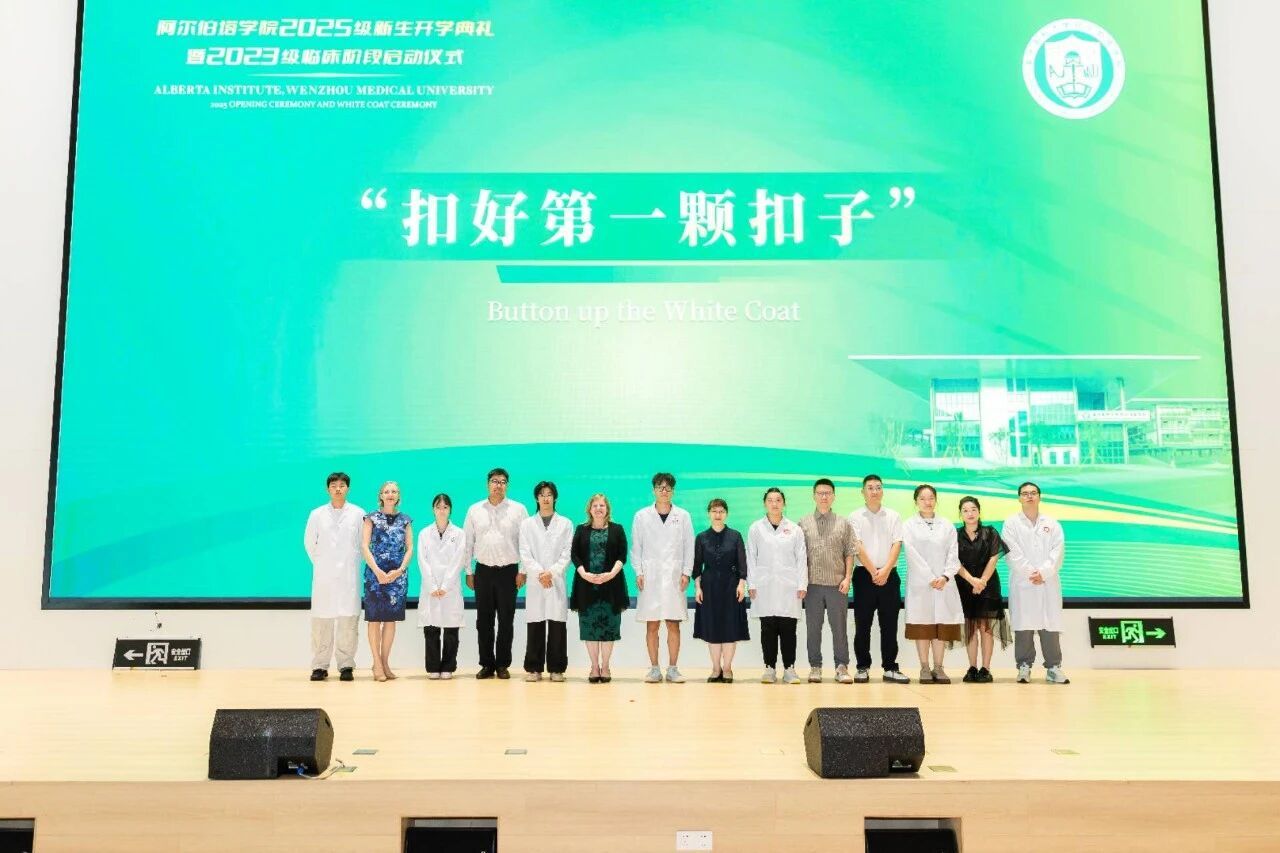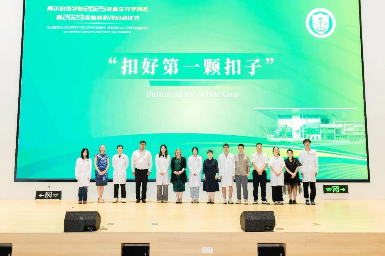 9月24日,K1体育2025级新生开学典礼暨2023级临床阶段启动仪式在国际交流中心报告厅举行。温医大党委委员、副董事长朱雪波,学术副董事长宋伟宏院士,K1体育外方执行长Tracey Hillier、加拿大阿尔伯塔大学医学与牙公司精神医学系教授、医学人文与艺术项目主任Pamela Brett-MacLean、K1体育联合管理委员会成员Hollis Lai、K1体育副经理朱雪琼,中加两校的教师代表及班主任参加典礼。典礼由公司党委副书记王小尚主持。