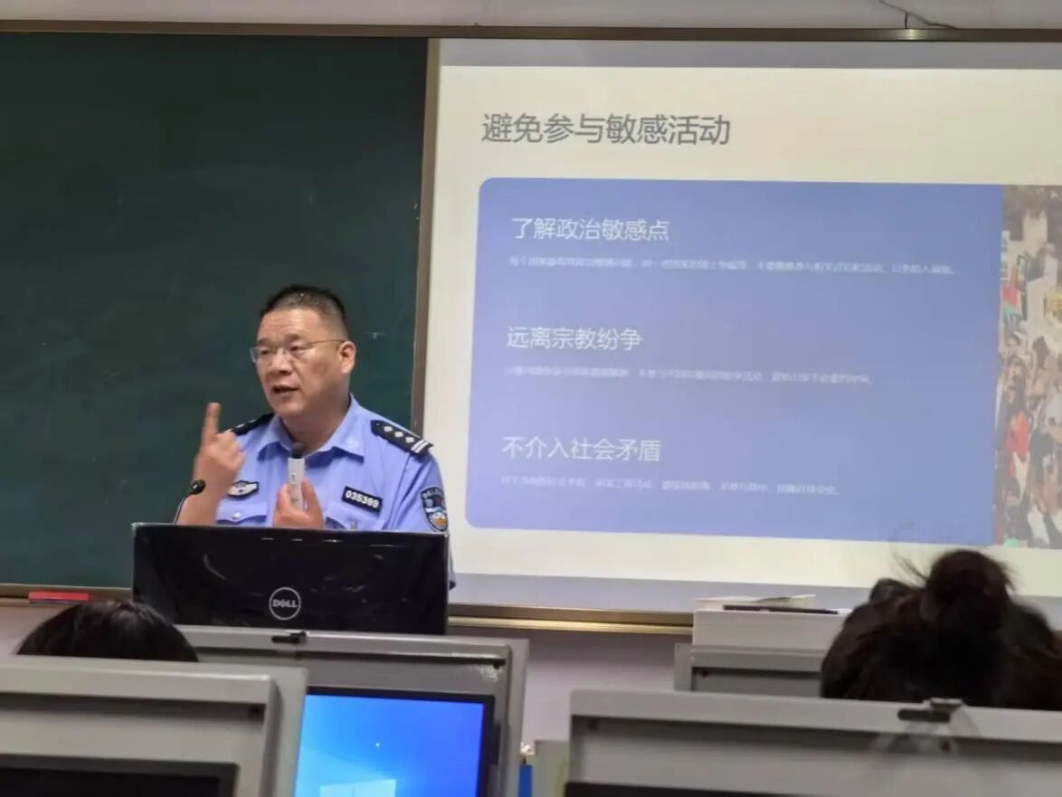 茶山街道派出所朱勇副所长以“老员工暑期外国游学安全”为主题,结合真实案例,重点强调了加拿大当地法律法规、社会治安特点、财产安全与毒品安全、宗教安全及应急求助渠道。他提醒员工:“务必遵守当地法律,避免因文化差异引发误解;遇紧急情况第一时间联系中国驻加使领馆或当地警方,并保存好报警记录。”