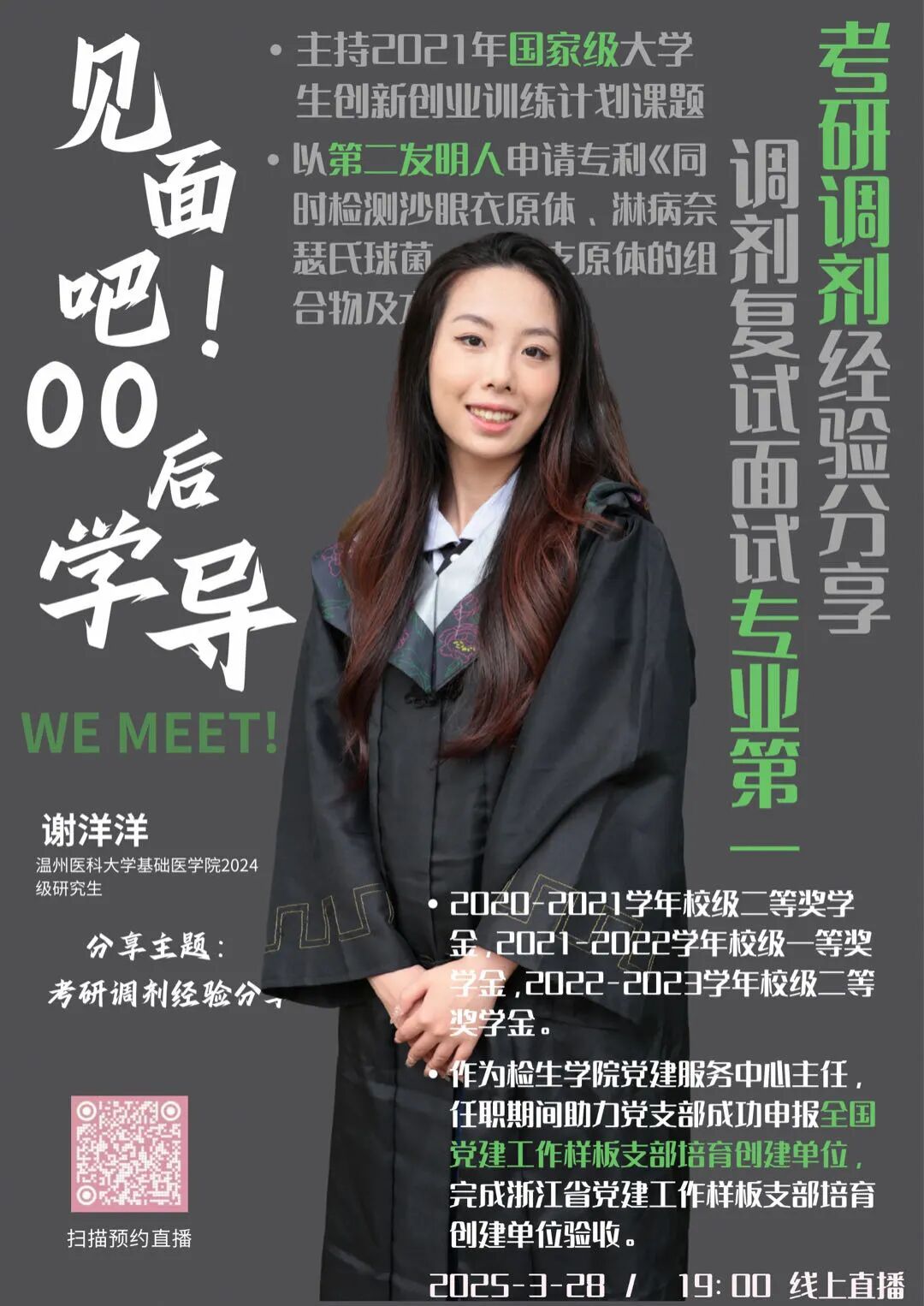 见面吧,00后学导|“We Meet, Gen Z learning leader”温医基础优秀学子谢洋洋考研调剂经验分享