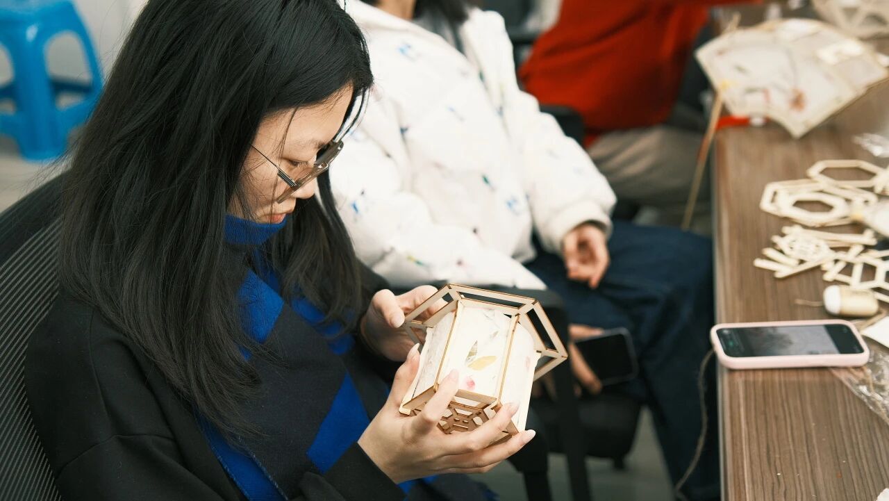 在随后的手工环节中,参与者们纷纷化身匠人,亲手制作皮纸心灯。从精心裁剪到细致装饰,每一步都凝聚着大家的智慧与心意,将美好的祝愿与无尽的希望融入这盏盏心灯之中。